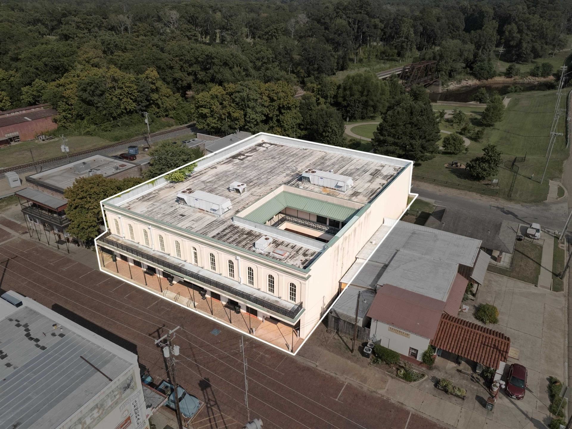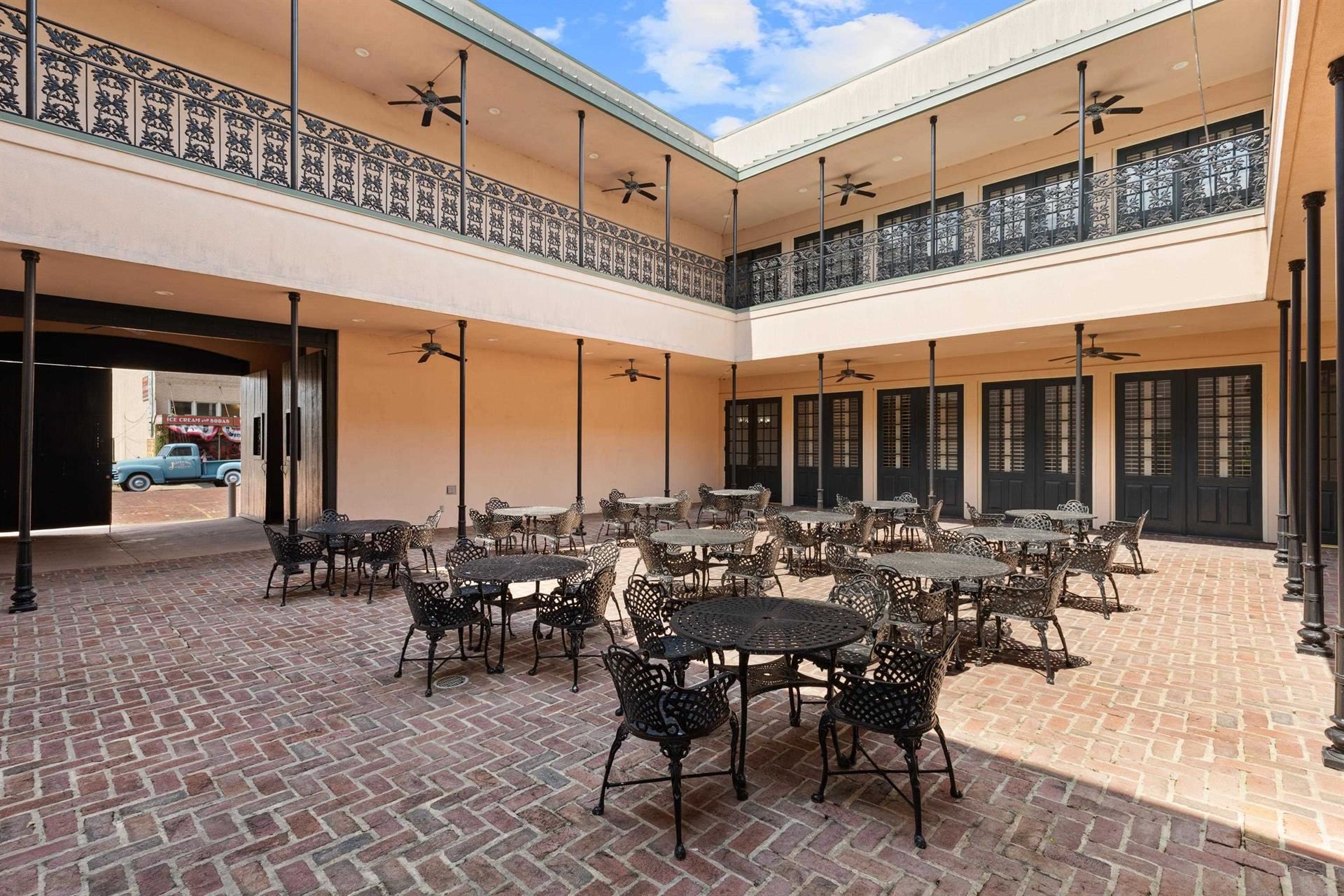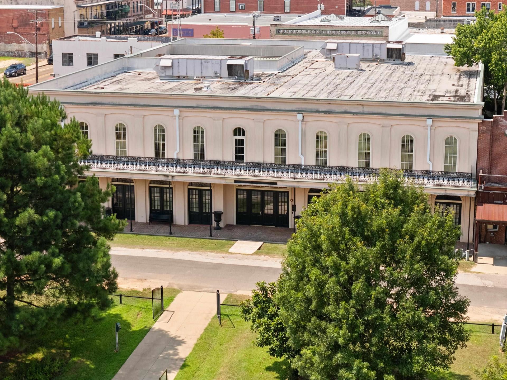 Located in the heart of Jefferson's Historic Riverfront District, The Jeffersonian Institute building offers the perfect venue for wedding receptions, conferences, educational seminars and training, conventions and as an event center. This modern facility features 19th century Jefferson style architecture with balconies overlooking the bayou on one side and the historic downtown area of Jefferson on the other side. On the first floor there are three ballrooms, a central gallery and an interior New Orleans-style open courtyard. There is a kitchen servery with a double sink, two dishwashers, a small commercial cooler and service access to Austin Street from a covered service driveway. The service kitchen and two exhibit rooms are located on the first floor. This venue has dishes and glassware for one hundred, two hundred banquet chairs, numerous round tables, classroom tables, and event tables. There are also twelve iron patio tables and fifty-two iron chairs to match in the courtyard. Plantation shutters adorn all of the large windows in the building. There are two ornate wooden tables at each entrance as well as two portable meta obelisks. A baby grand piano enhances the gallery and a commercial elevator and a reception area are at the south entrance as well as a visitor center with high ceilings for exhibit displays. Restrooms are located adjacent to the visitor center. The second floor may be reached using the elevator or the two staircases. There are at least seventeen office spaces and classrooms, two large assembly rooms, storage rooms, restrooms, access to the courtyard balconies and a board room with a large table and twelve chairs. Two of the rooms have bookshelves with file cabinets. There is also a server space upstairs with a refrigerator, microwave and sink. On the south side of the building is Dallas Street, Big Cypress Bayou and a 31 acre environmental park with a boat launching area. On the north side is Austin Street with restaurants, shops, bars, hotels and the county courthouse. The Jeffersonian Institute could serve as a business conferencing center and be adapted to become a boutique hotel. Its heavy steel and concrete foundation and infrastructure allows many possibilities for other adaptive uses.