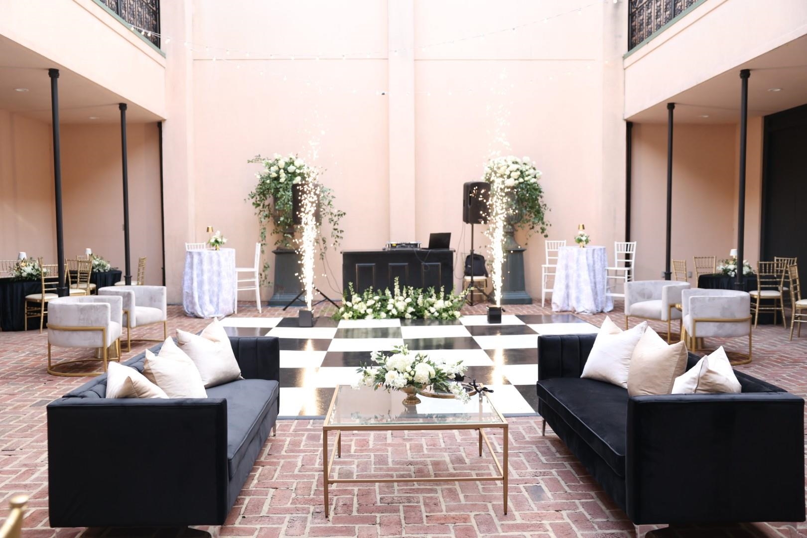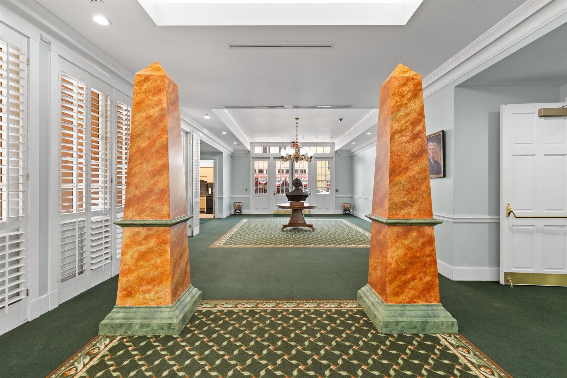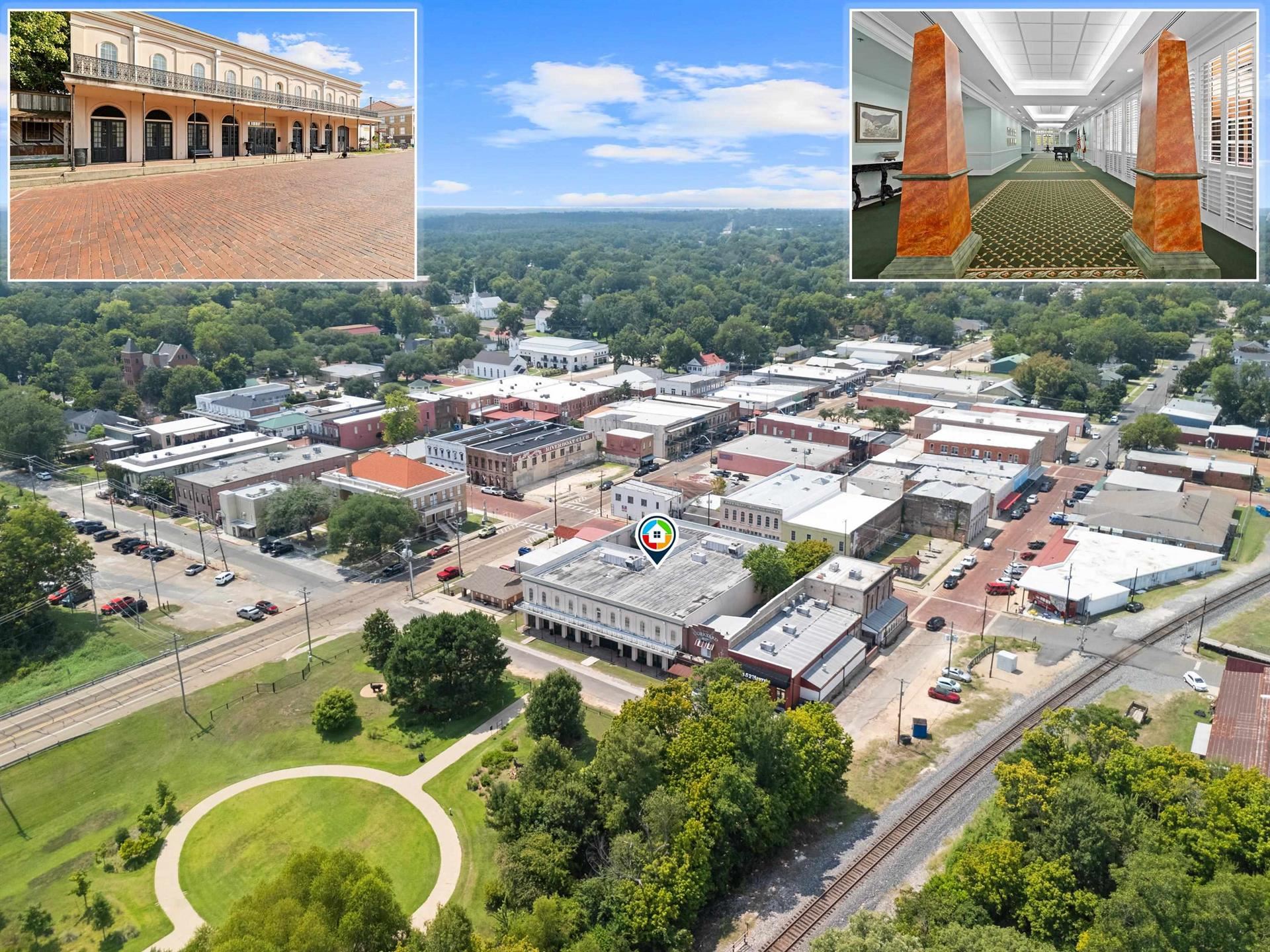 Located in the heart of Jefferson's Historic Riverfront District, The Jeffersonian Institute building offers the perfect venue for wedding receptions, conferences, educational seminars and training, conventions and as an event center. This modern facility features 19th century Jefferson style architecture with balconies overlooking the bayou on one side and the historic downtown area of Jefferson on the other side. On the first floor there are three ballrooms, a central gallery and an interior New Orleans-style open courtyard. There is a kitchen servery with a double sink, two dishwashers, a small commercial cooler and service access to Austin Street from a covered service driveway. The service kitchen and two exhibit rooms are located on the first floor. This venue has dishes and glassware for one hundred, two hundred banquet chairs, numerous round tables, classroom tables, and event tables. There are also twelve iron patio tables and fifty-two iron chairs to match in the courtyard. Plantation shutters adorn all of the large windows in the building. There are two ornate wooden tables at each entrance as well as two portable meta obelisks. A baby grand piano enhances the gallery and a commercial elevator and a reception area are at the south entrance as well as a visitor center with high ceilings for exhibit displays. Restrooms are located adjacent to the visitor center. The second floor may be reached using the elevator or the two staircases. There are at least seventeen office spaces and classrooms, two large assembly rooms, storage rooms, restrooms, access to the courtyard balconies and a board room with a large table and twelve chairs. Two of the rooms have bookshelves with file cabinets. There is also a server space upstairs with a refrigerator, microwave and sink. On the south side of the building is Dallas Street, Big Cypress Bayou and a 31 acre environmental park with a boat launching area. On the north side is Austin Street with restaurants, shops, bars, hotels and the county courthouse. The Jeffersonian Institute could serve as a business conferencing center and be adapted to become a boutique hotel. Its heavy steel and concrete foundation and infrastructure allows many possibilities for other adaptive uses.